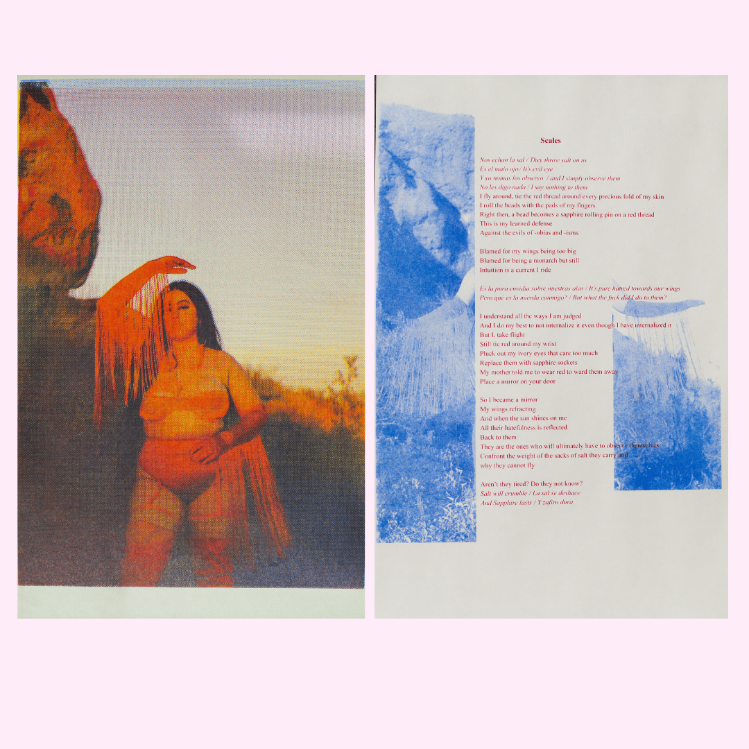 A visual representation of reclaiming ones self while deflecting the hatefulness of -obias and -isms. Use this photo as you would a mirror or red string to ward off el malo ojo.